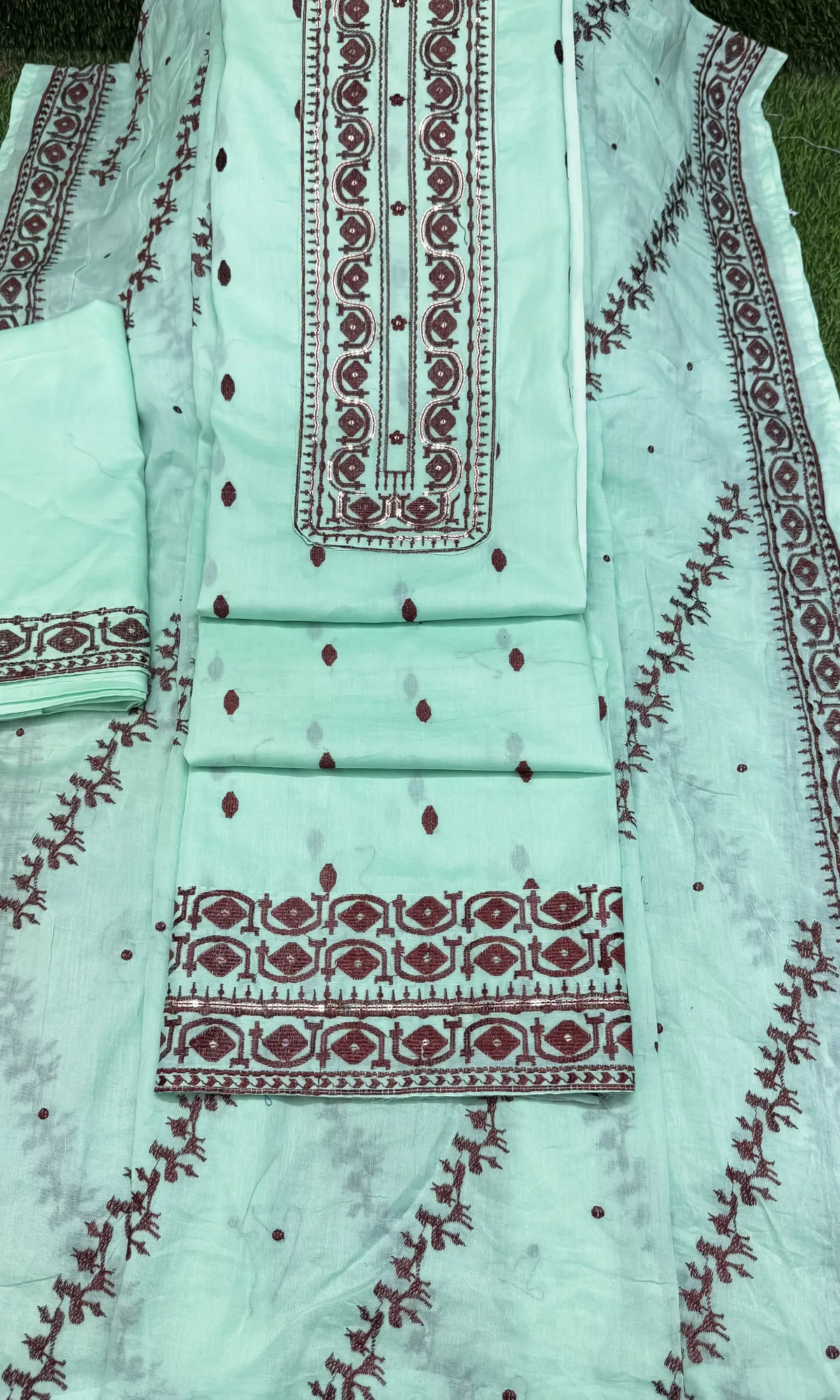 লাকনো কাজের থ্রি পিস – New ডিপ পিয়াজ কালার
