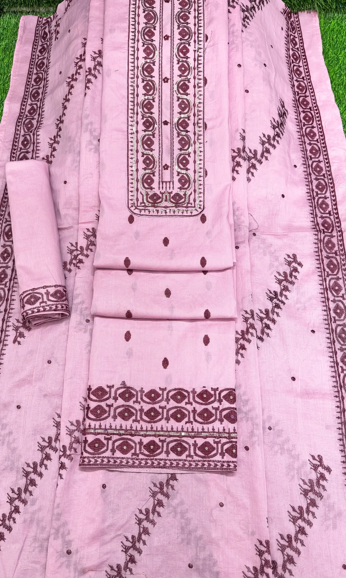 লাকনো কাজের থ্রি পিস – পার্পেল কালার