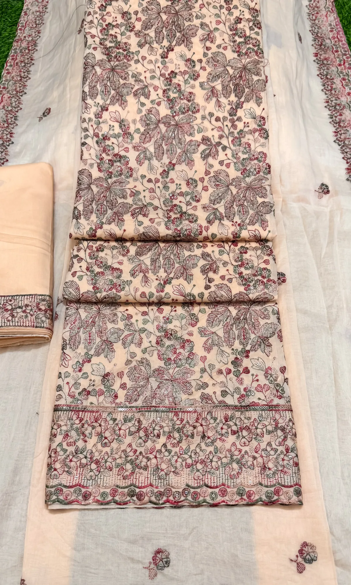 লাকনো কাজের থ্রি পিস – New ডিপ পিয়াজ কালার