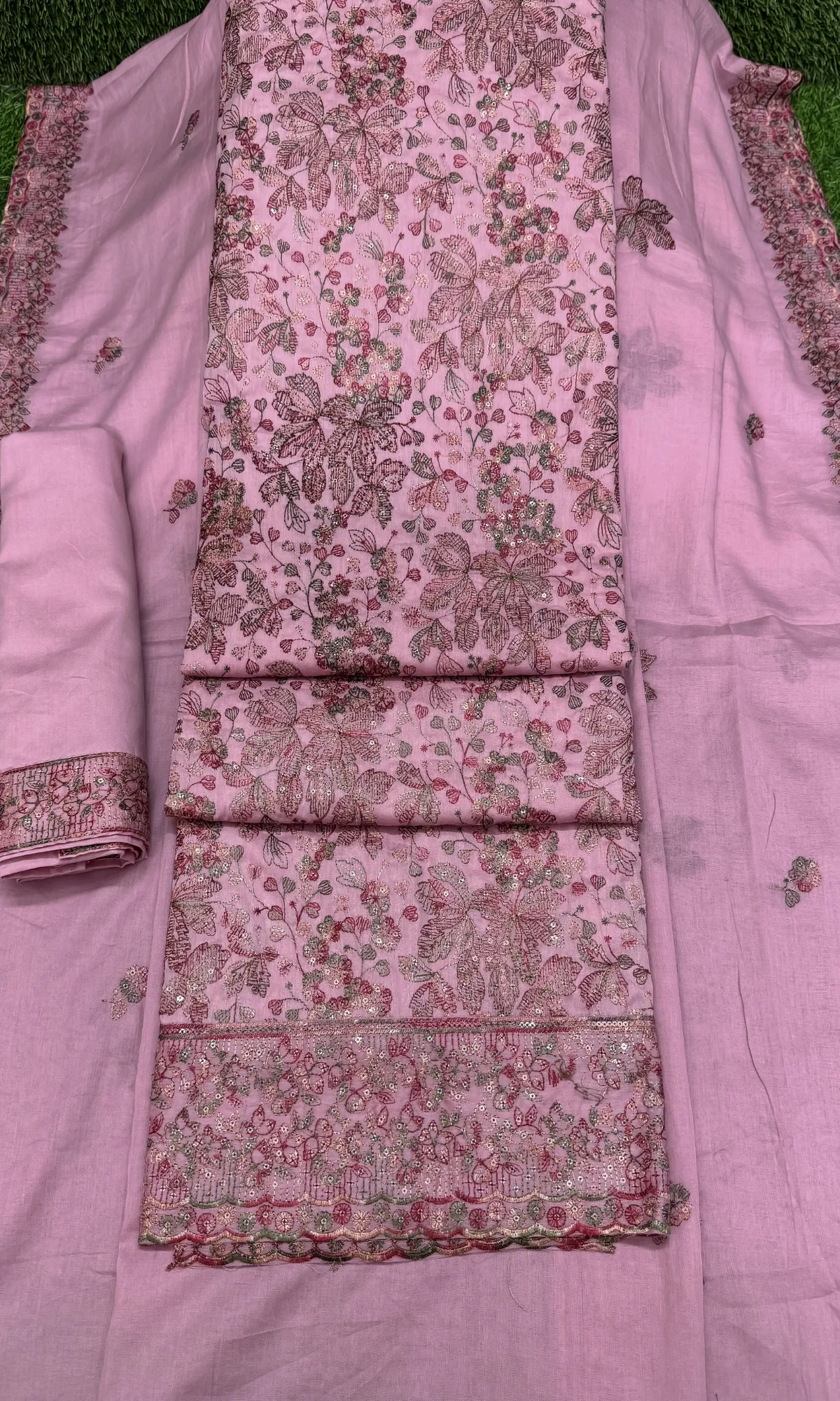 লাকনো কাজের থ্রি পিস – New ডিপ পিয়াজ কালার