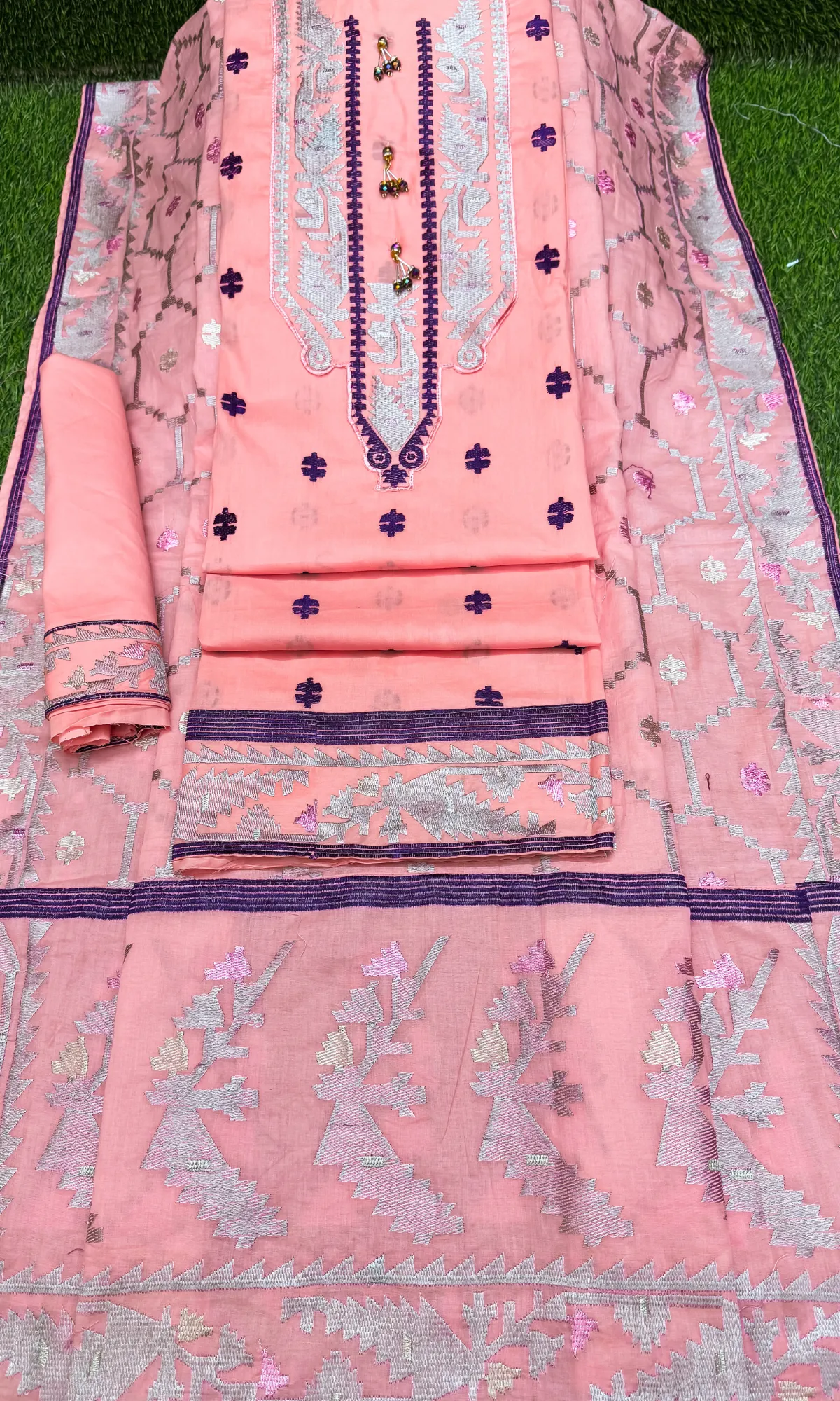 লাকনো কাজের থ্রি পিস – New ডিপ পিয়াজ কালার