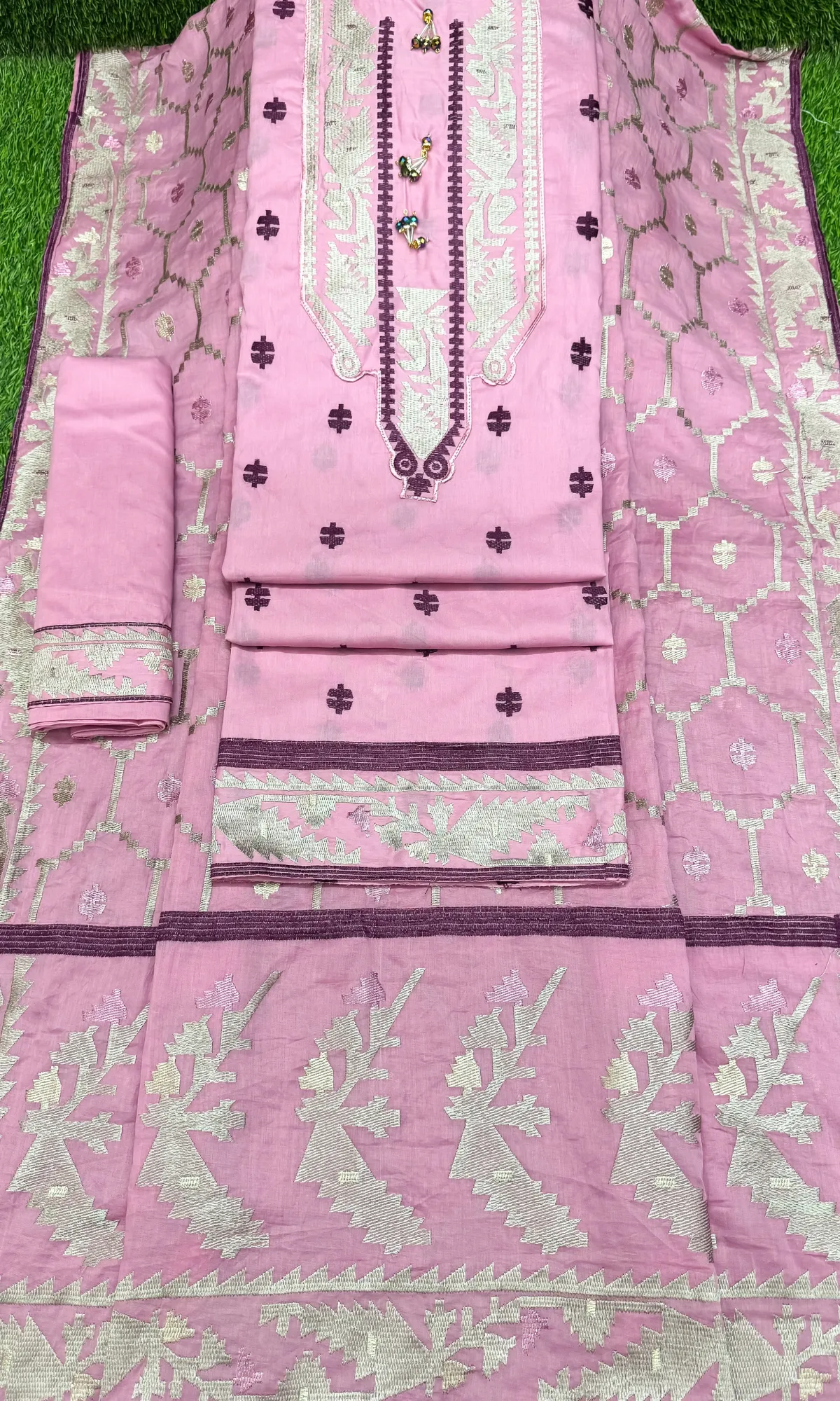 লাকনো কাজের থ্রি পিস – New ডিপ পিয়াজ কালার