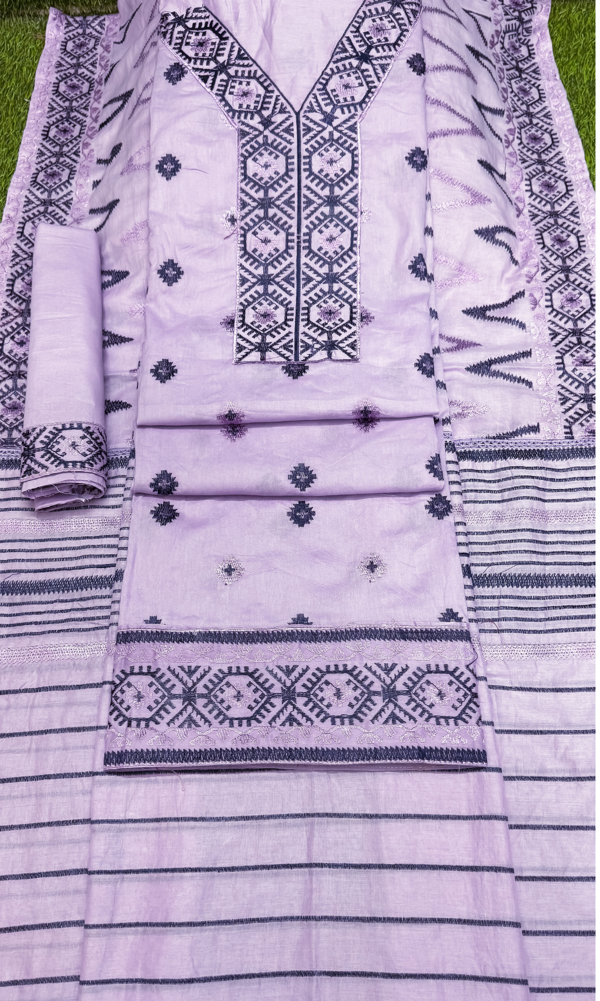 লাকনো কাজের থ্রি পিস – New ডিপ পিয়াজ কালার