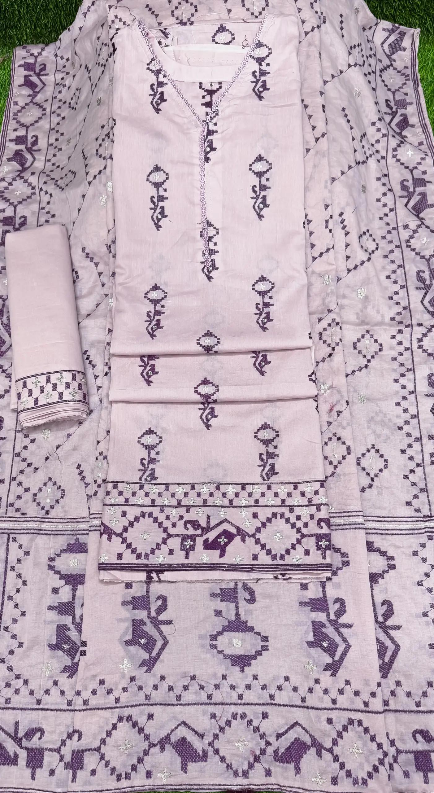 লাকনো কাজের থ্রি পিস – পার্পেল কালার