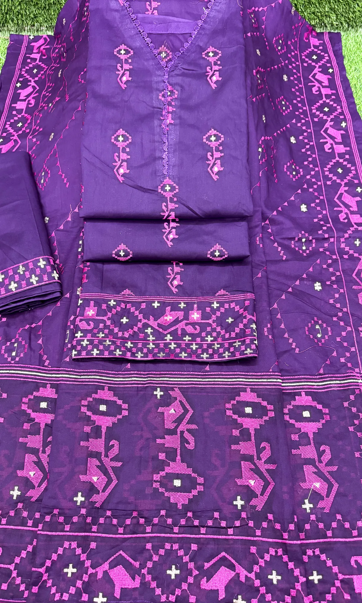 লাকনো কাজের থ্রি পিস – পার্পেল কালার