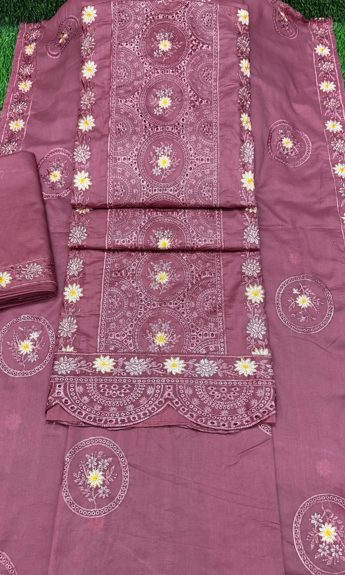 লাকনো কাজের থ্রি পিস – New ডিপ পিয়াজ কালার