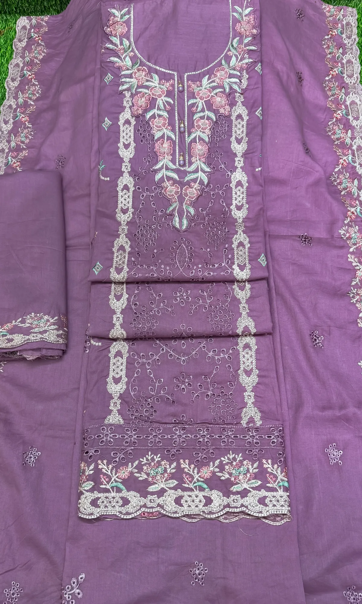 লাকনো কাজের থ্রি পিস – পার্পেল কালার