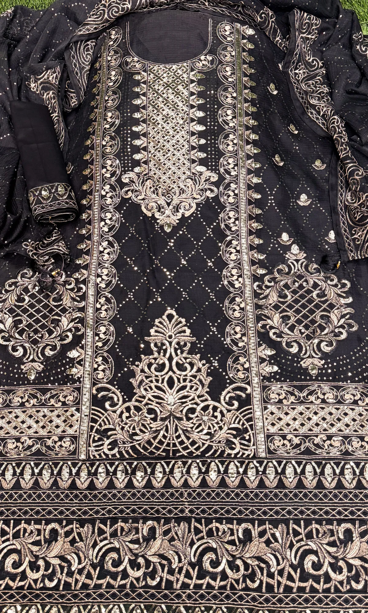 লতা পাতা সুতার কাজ করা-পেষ্ট কালার
