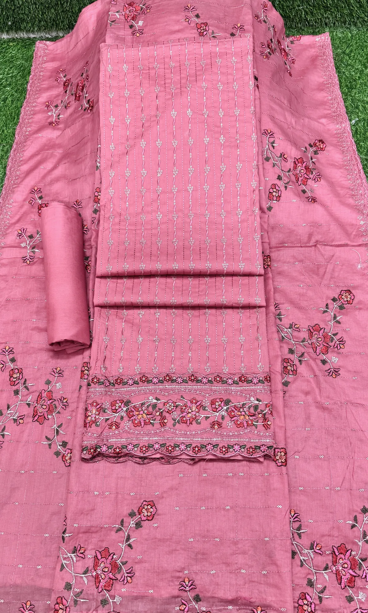 লাকনো কাজের থ্রি পিস – New ডিপ পিয়াজ কালার