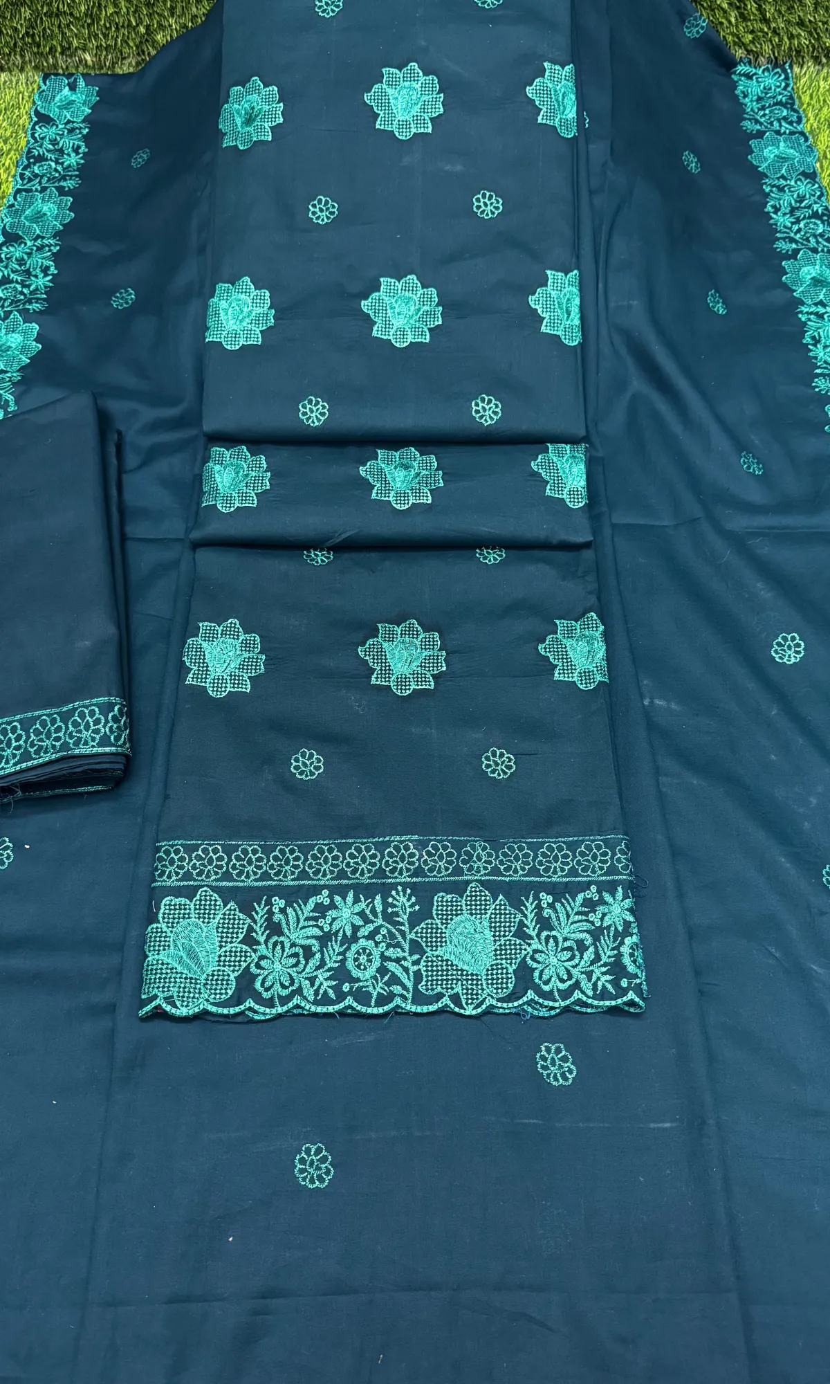 লাকনো কাজের থ্রি পিস – ডিপ ড্রাগন কালার