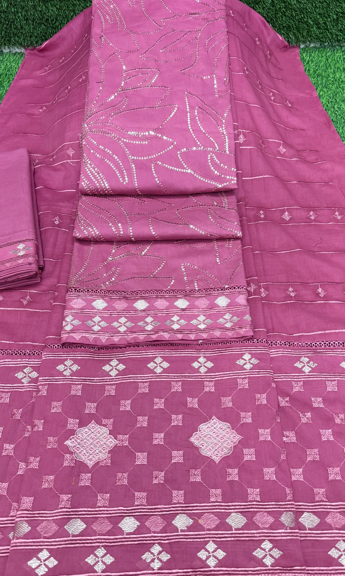 লাকনো কাজের থ্রি পিস – পার্পেল কালার