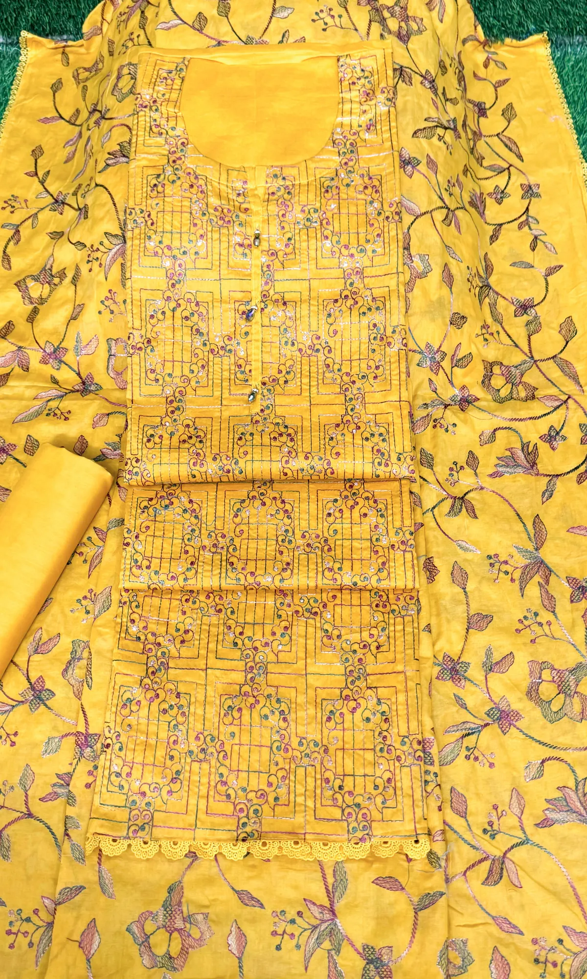 লাকনো কাজের থ্রি পিস – মাস্টার হলুদ কালার quantity