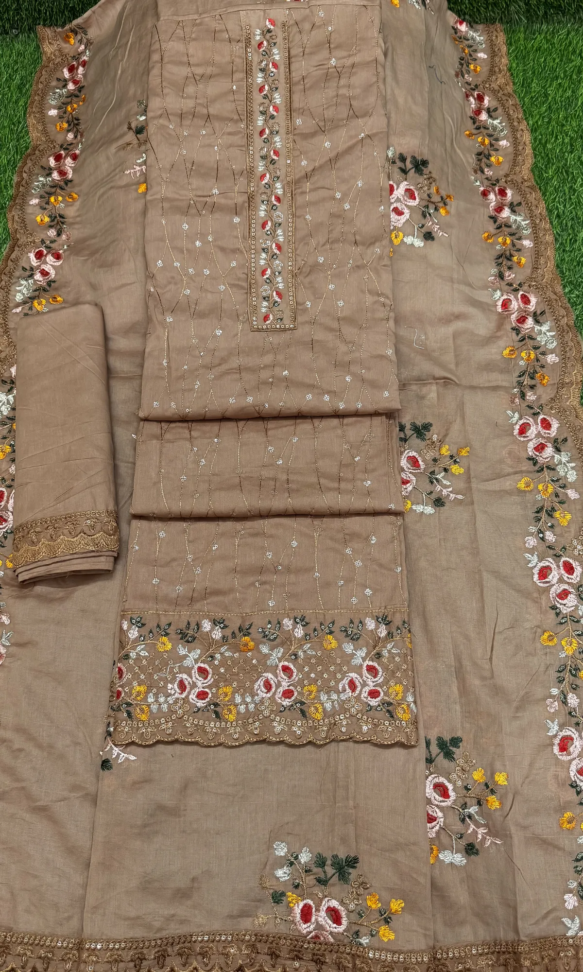 লাকনো কাজের থ্রি পিস – New ডিপ পিয়াজ কালার