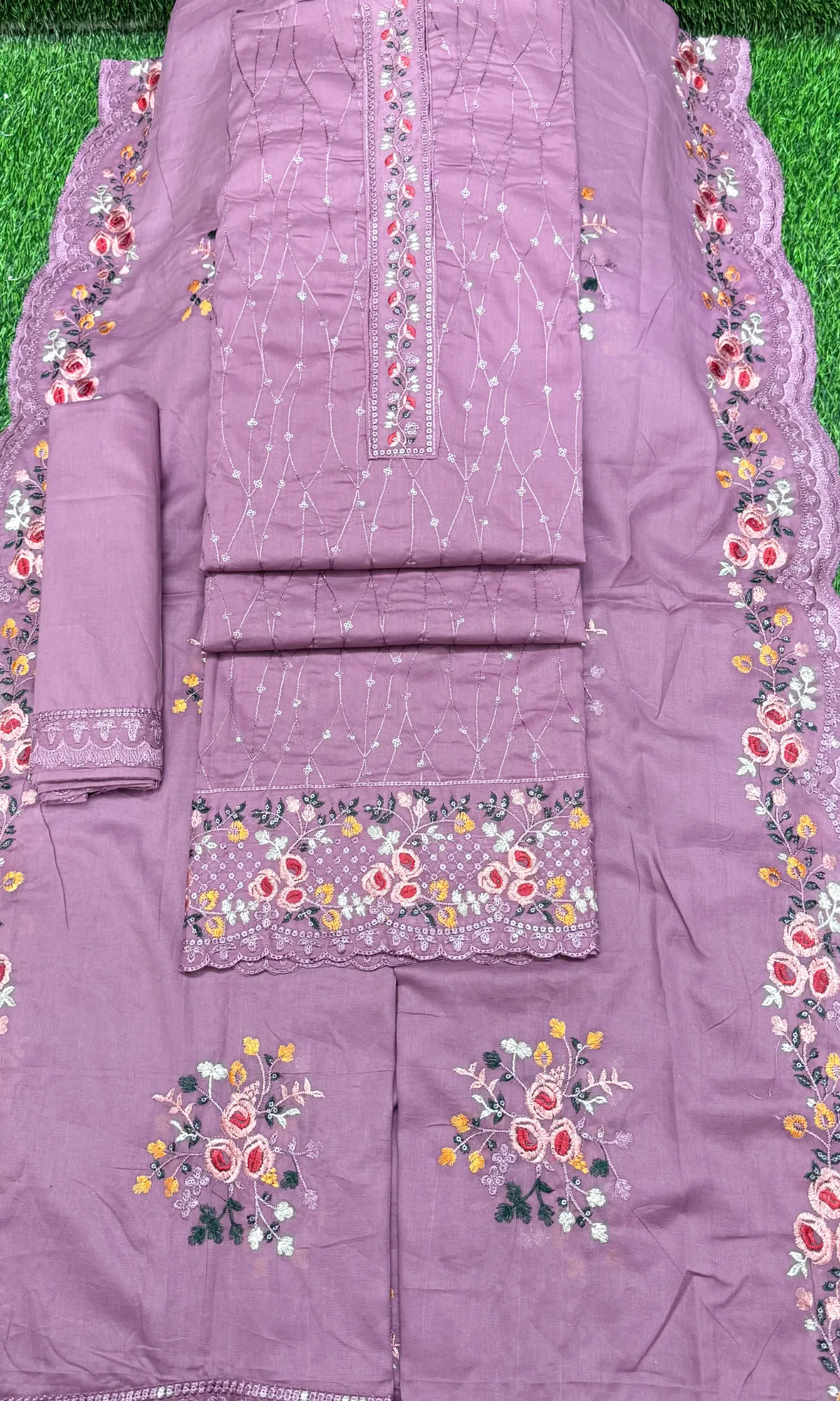 লাকনো কাজের থ্রি পিস – New ডিপ পিয়াজ কালার