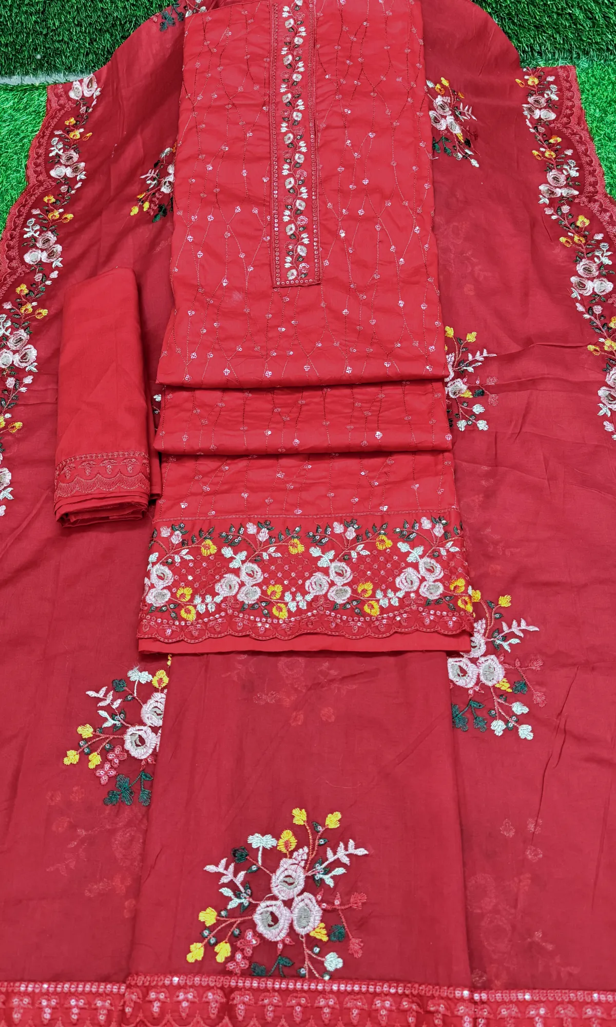 লাকনো কাজের থ্রি পিস – New ডিপ পিয়াজ কালার