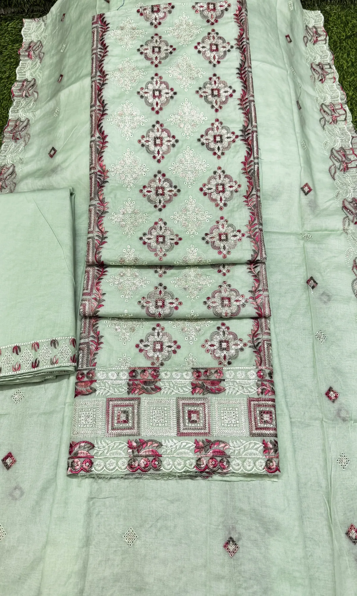 লতা পাতা সুতার কাজ করা-গ্রীন কালার